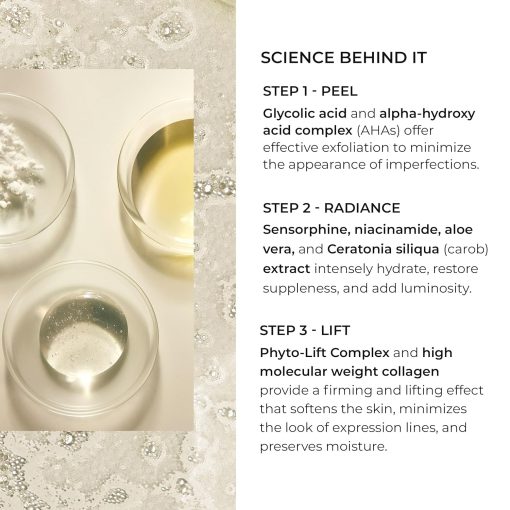 - The first step provides gentle exfoliation to rejuvenate and even skin tone