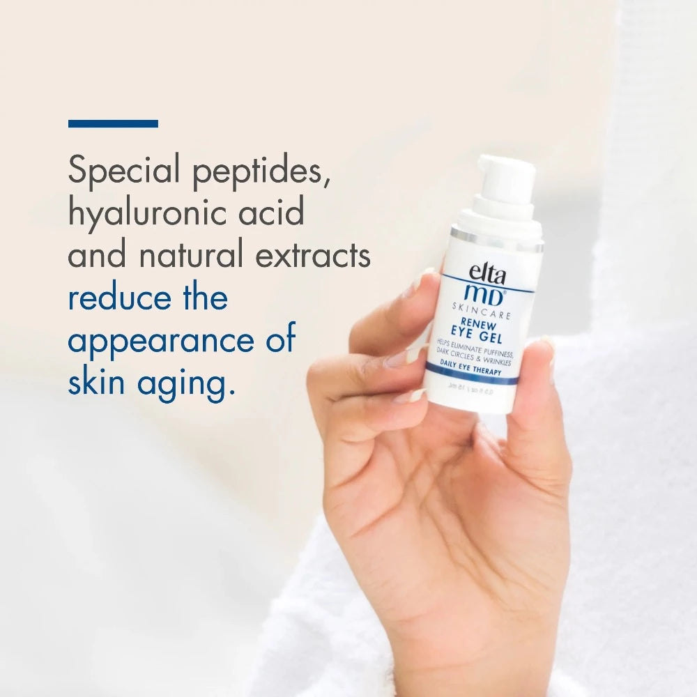 EltaMD Renew Eye Gel is an oil-free formula that helps diminish fine lines, wrinkles, dark circles, and eases under-eye puffiness while generating brighter, healthier-looking skin. Special peptides, hyaluronic acid and natural extracts support the skin matrix to help prevent and reduce the appearance of skin aging.