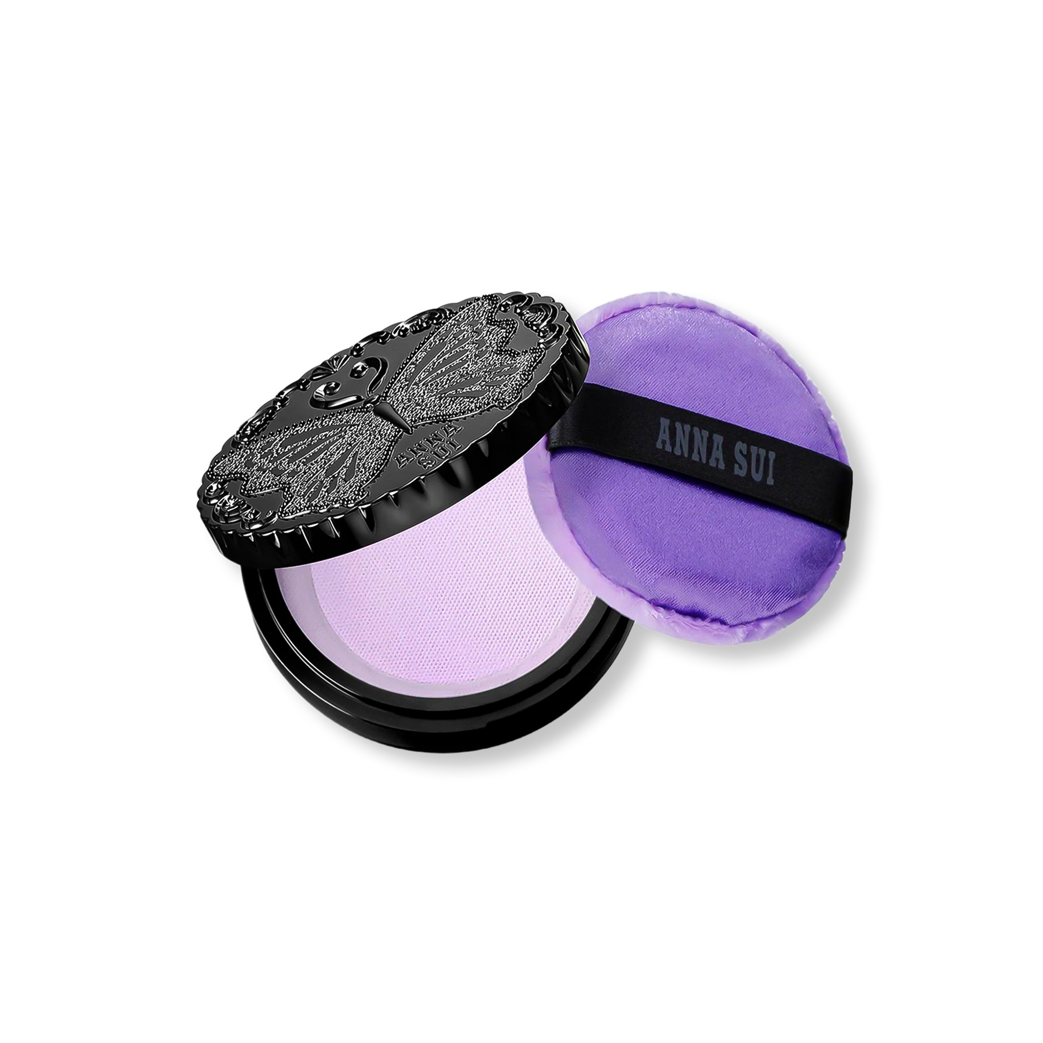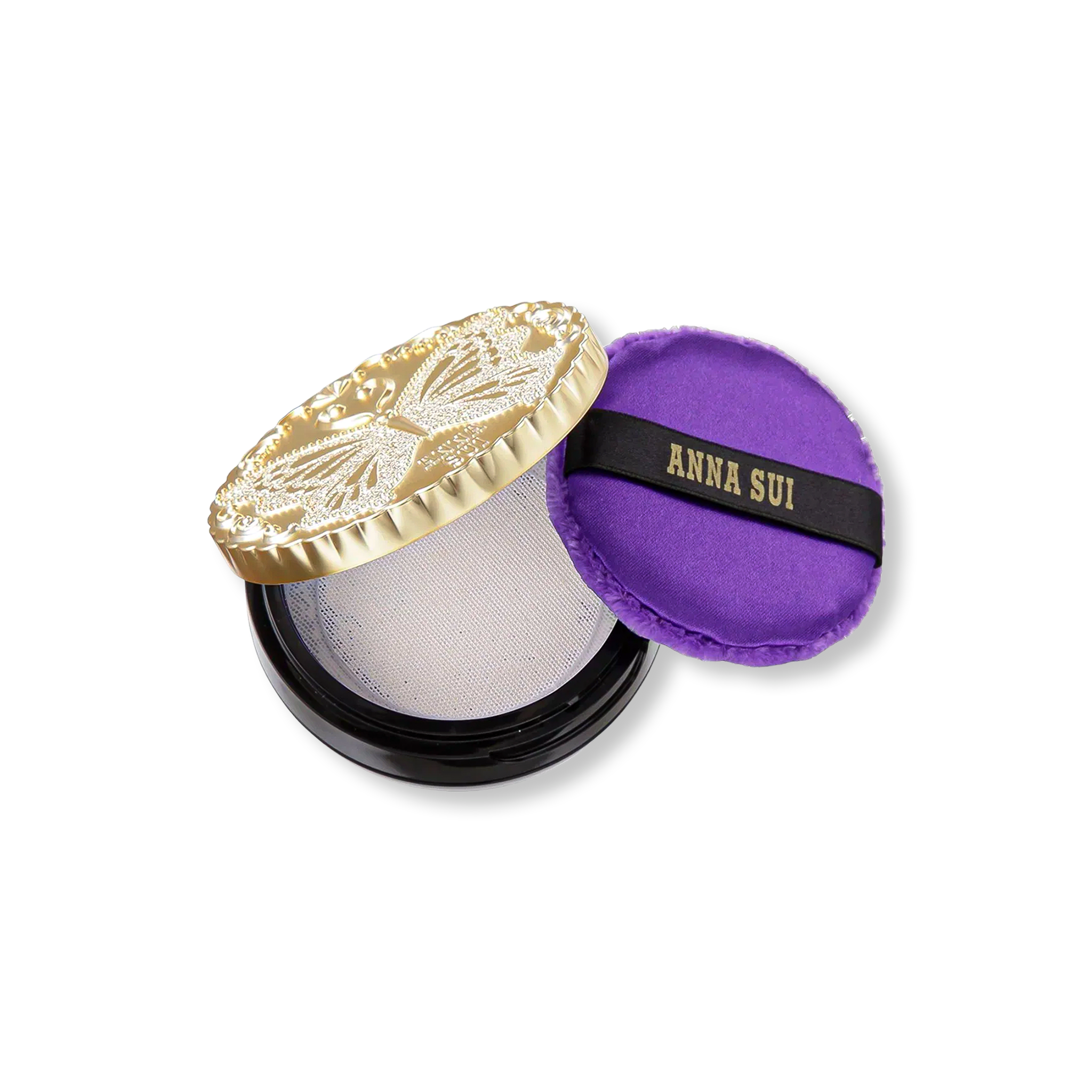 A beautiful butterfly compact case and applicator puff.