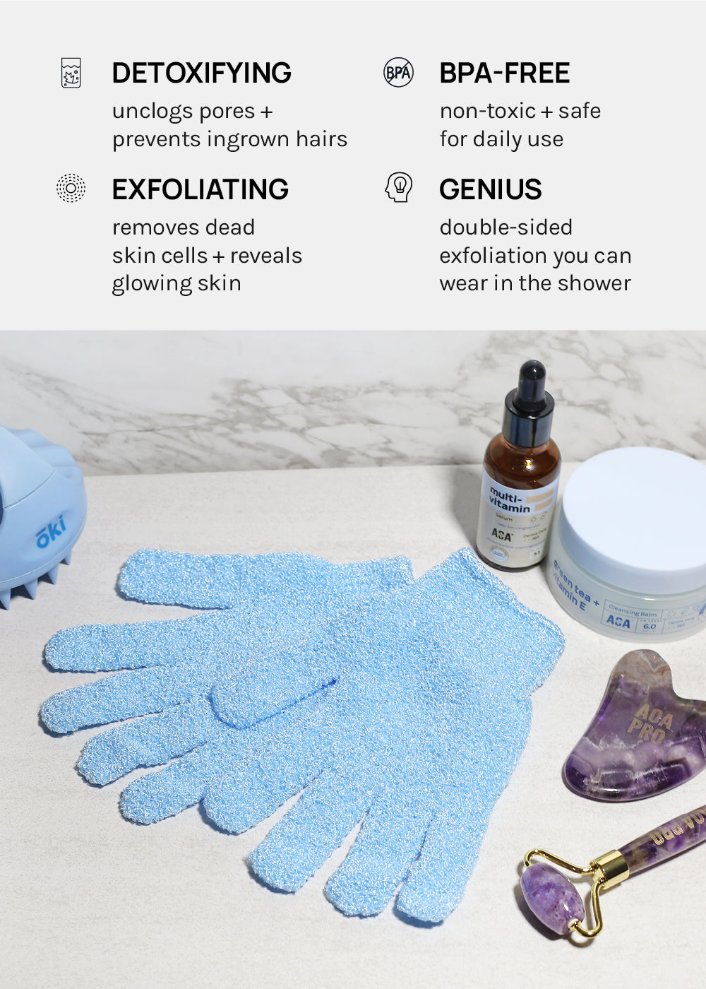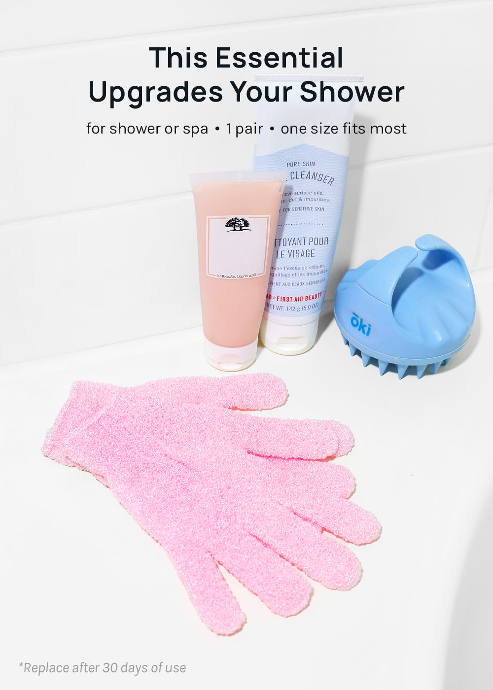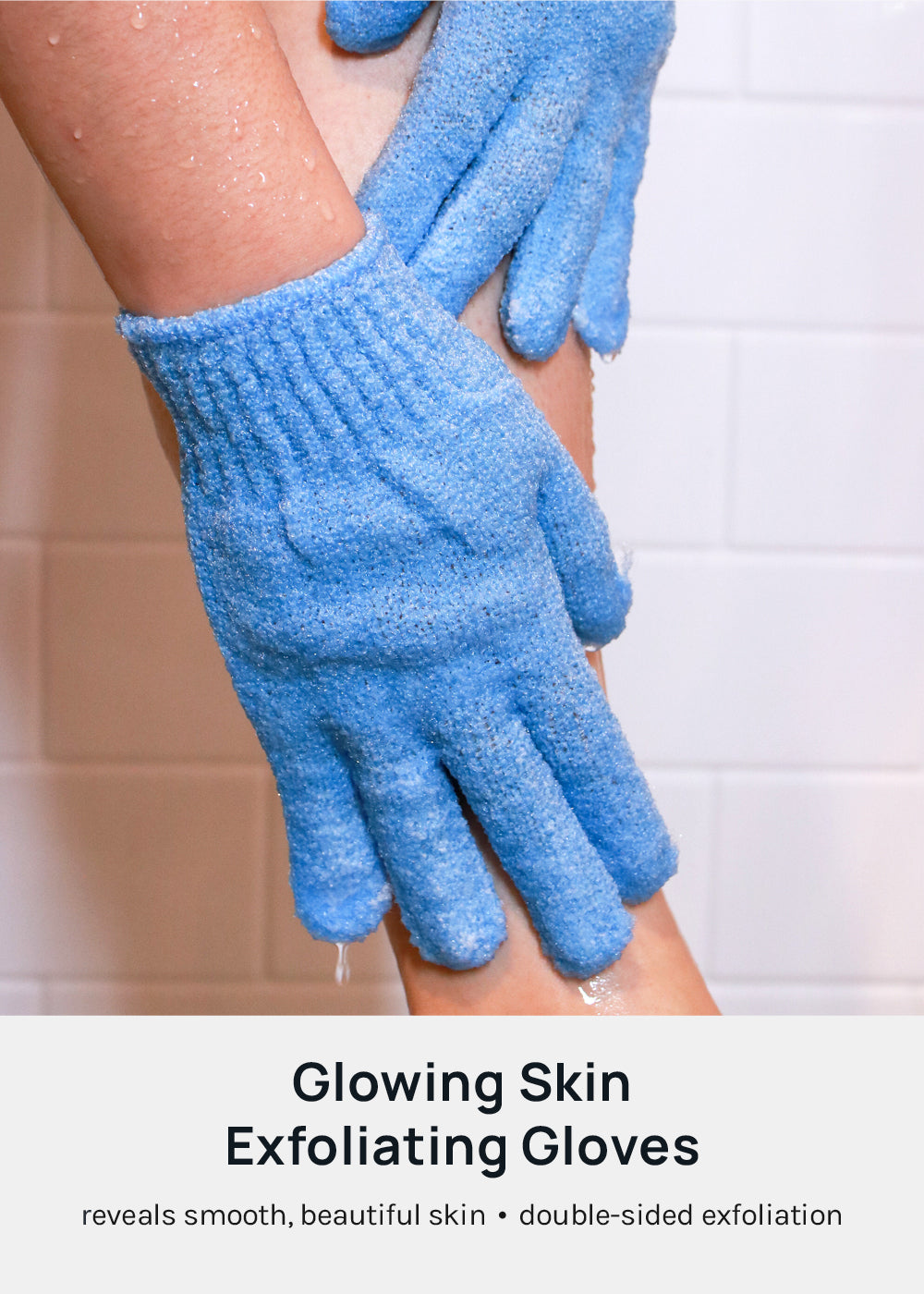 These exfoliating bath gloves can be used with your favorite body wash or bar soap to remove dead skin cells + stimulate blood circulation for smooth skin!